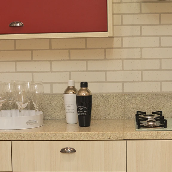 Muito popular em países europeus e nos Estados Unidos, a sofisticação dos papéis de parede, unidos à praticidade, tornaram seu uso uma prática comum e requisitada. Com o desenvolvimento da técnica, hoje é possível encontrar os mais diversos modelos, desde os mais simples, com pequenas estampas, aos mais trabalhados e com texturas exóticas. O revestimento da parede da sua cozinha com essa ideia criativa pode trazer diferentes cenários, desde o sofisticado ao mais descontraído, tudo dependerá da sua intenção. Além de serem facilmente aplicáveis, os papéis decorados não exigem mão de obra especializada – a menos que você faça questão – além de a maioria ser antialérgico, antichamas (ideal para cozinhas) e trazerem a sensação de aconchego.