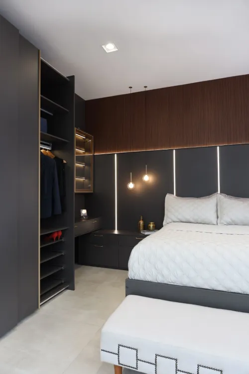 O primeiro ponto crucial ao planejar uma suíte planejada é o aproveitamento máximo do espaço disponível. Elas devem ser projetadas levando em consideração até os menores cantos. Isso significa que você pode ter móveis planejados que se encaixam perfeitamente em áreas antes subutilizadas, como embaixo de escadas, nichos ou até mesmo cantos estratégicos.