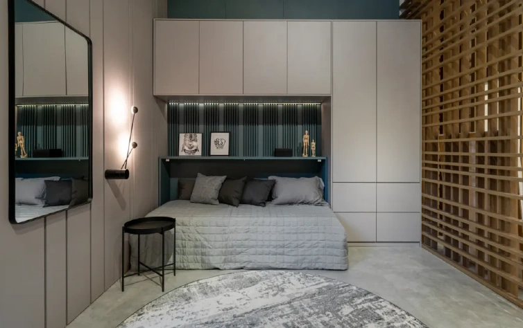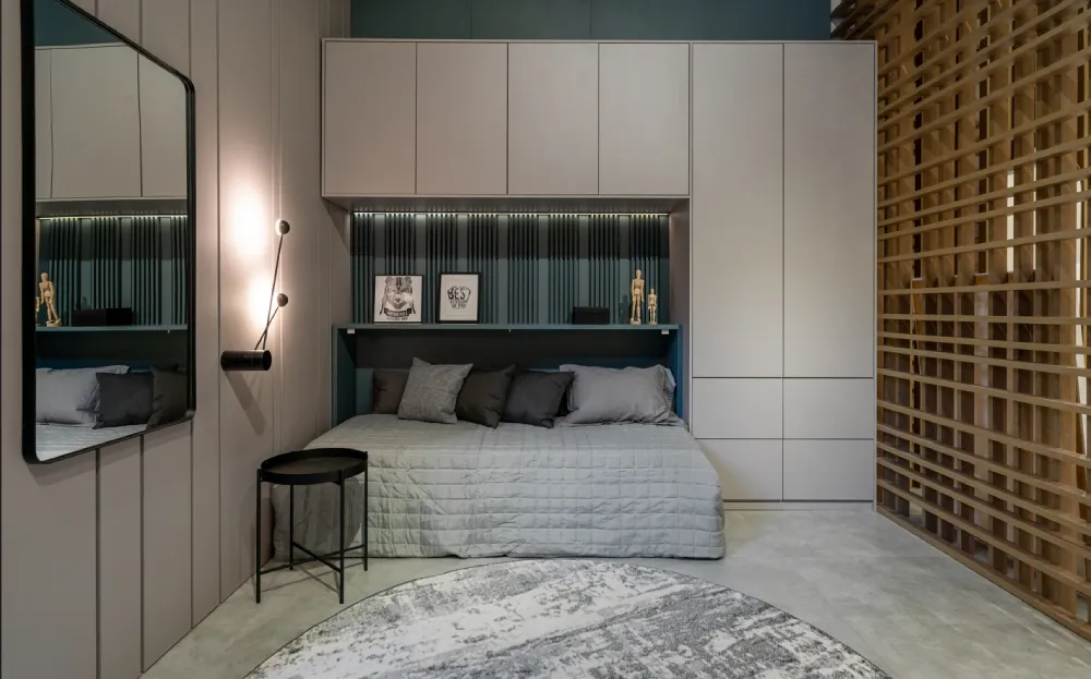 Um guarda-roupa ou armário planejado é crucial para manter o ambiente organizado. Em um dormitório de casal, os armários planejados podem incluir divisórias específicas para cada pessoa, facilitando a organização. Opções como portas de correr, espelhos e iluminação interna podem ser incorporadas para otimizar ainda mais o espaço. Para dormitório de solteiro, optar por um armário embutido pode liberar mais área útil para outras atividades.